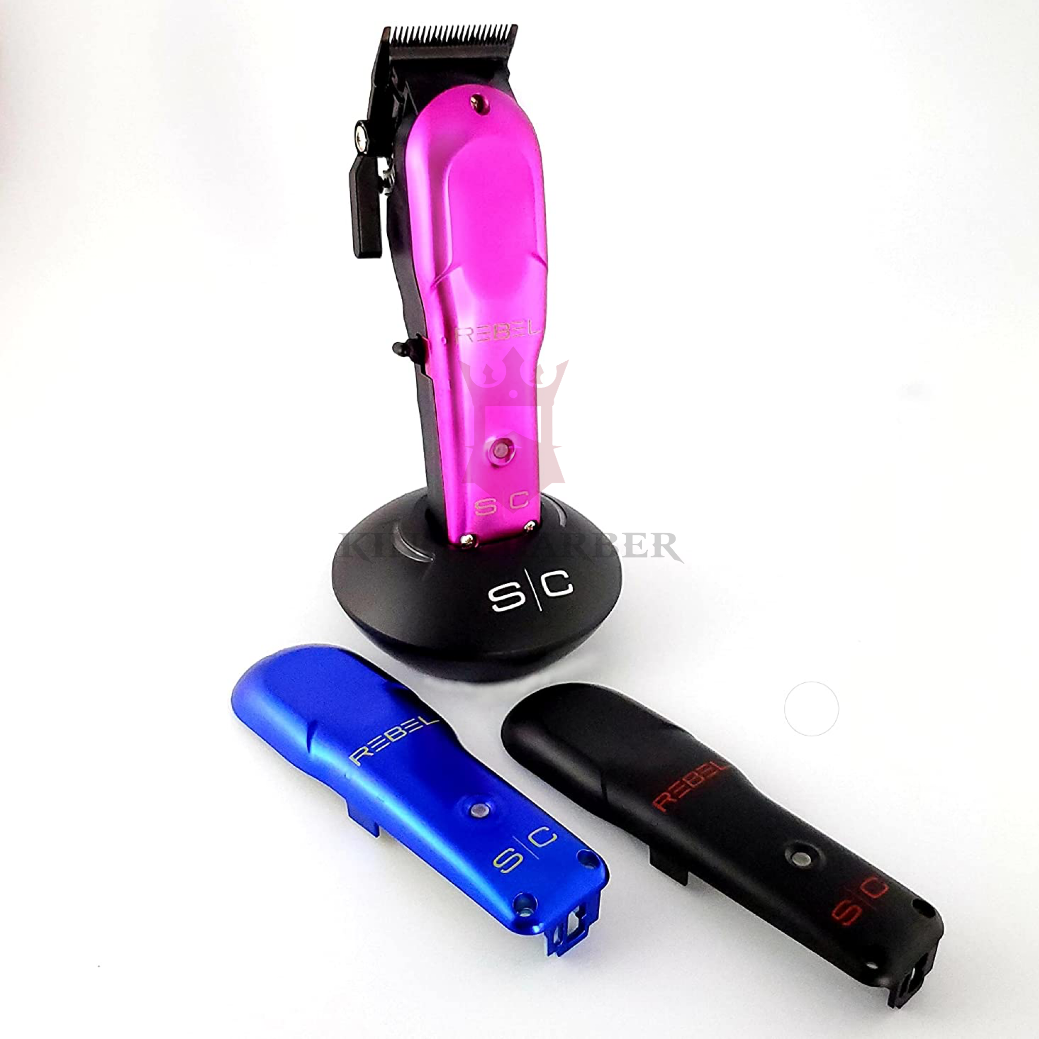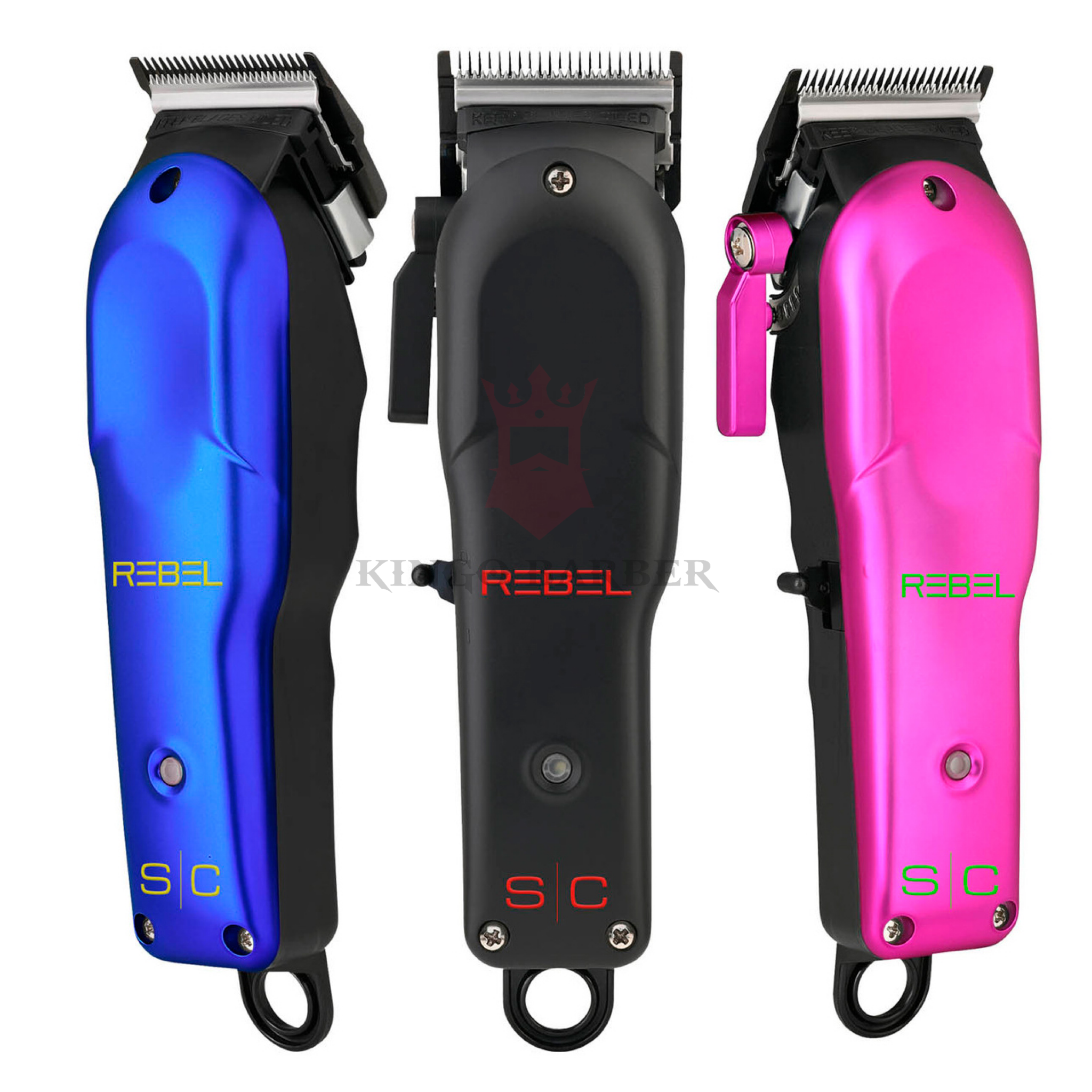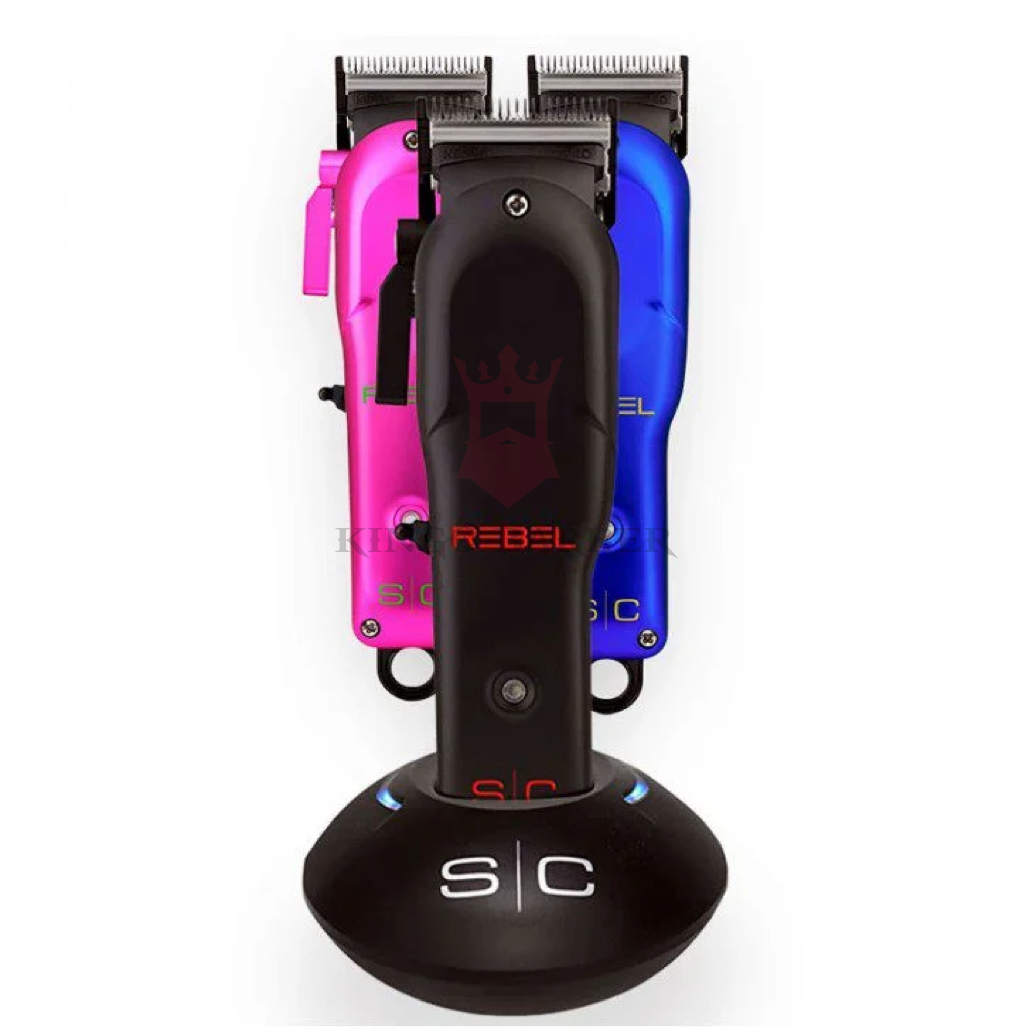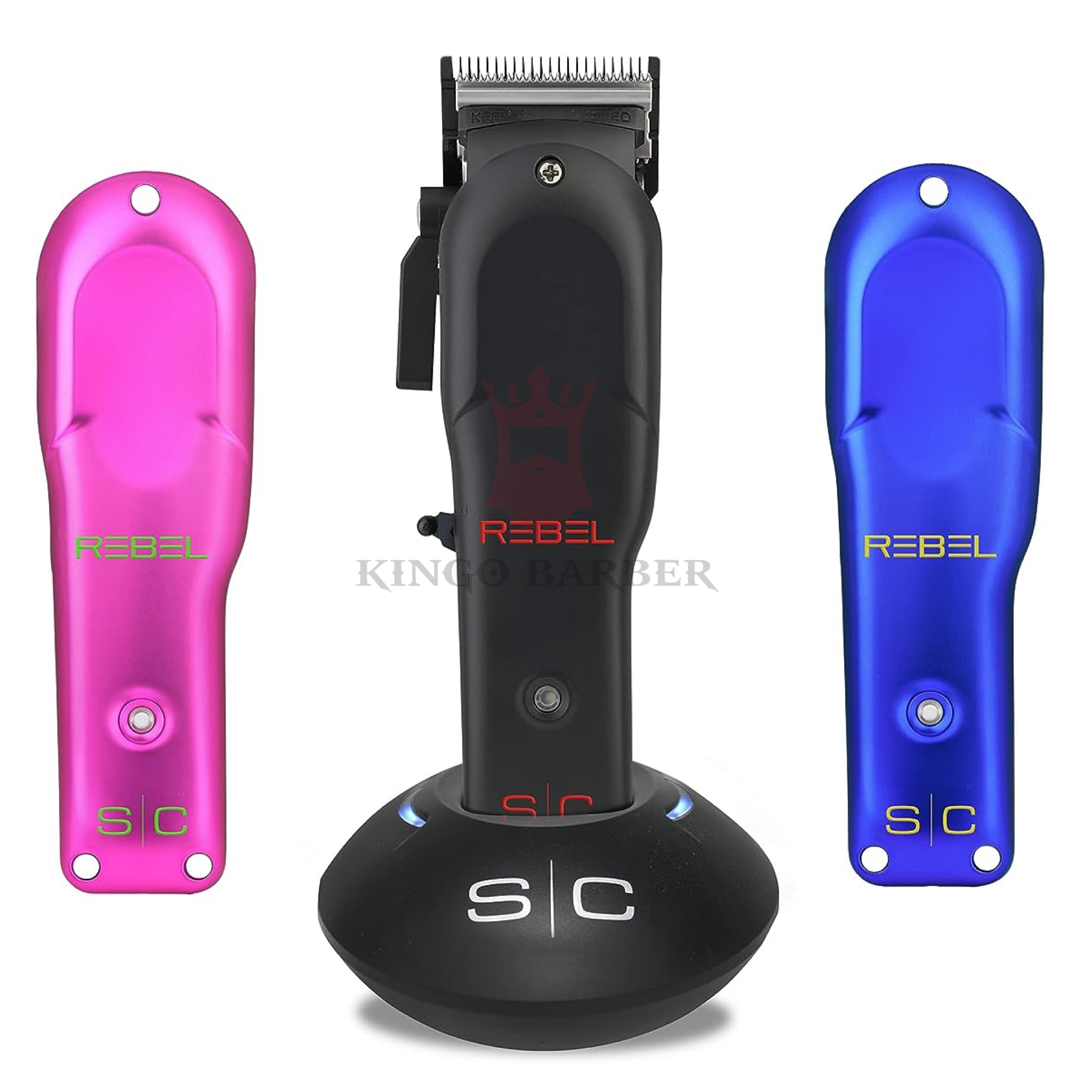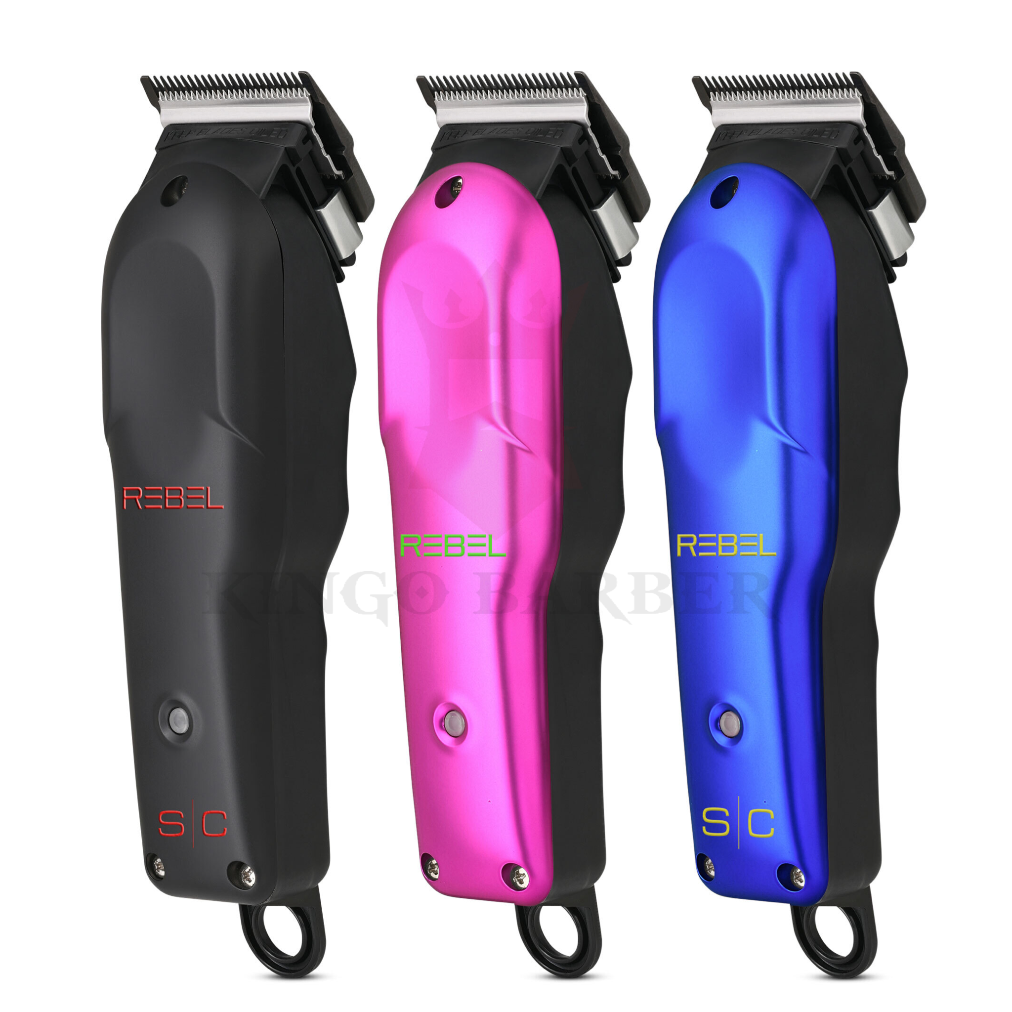 Con más potencia que nunca, el Rebel tiene un motor rotativo de súper par con 7.200 rpm, y todavía tiene poco ruido y vibración. Batería de Iones de litio de 3 Horas de funcionamiento inalámbrico. El Rebel tiene tres (3) kits de modificación del cuerpo con tapas rosa, azul o negra, todos con el logotipo de Rebel y una luz iluminadora cuando están en uso. Ensamblado con la combinación de cuchilla Double Black Diamond de hoja fija Fusión y cuchilla de corte Deep Slim y gancho colgante para su almacenamiento. Con palancas de clic o estilo libre personalizables para obtener la máxima precisión, flexibilidad y opciones. Con nuestros nuevos protectores Dub Double Magnetic codificados por colores con dientes de plástico más duros, duraderos y rígidos. Incluye un soporte de carga, un soporte elástico, un cable de carga de paso y un cable de carga Micro-USB para una funcionalidad de carga universal.