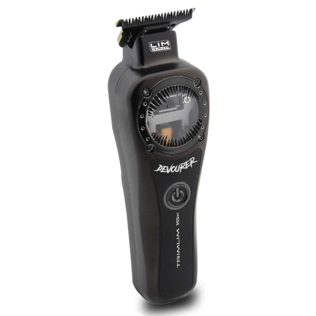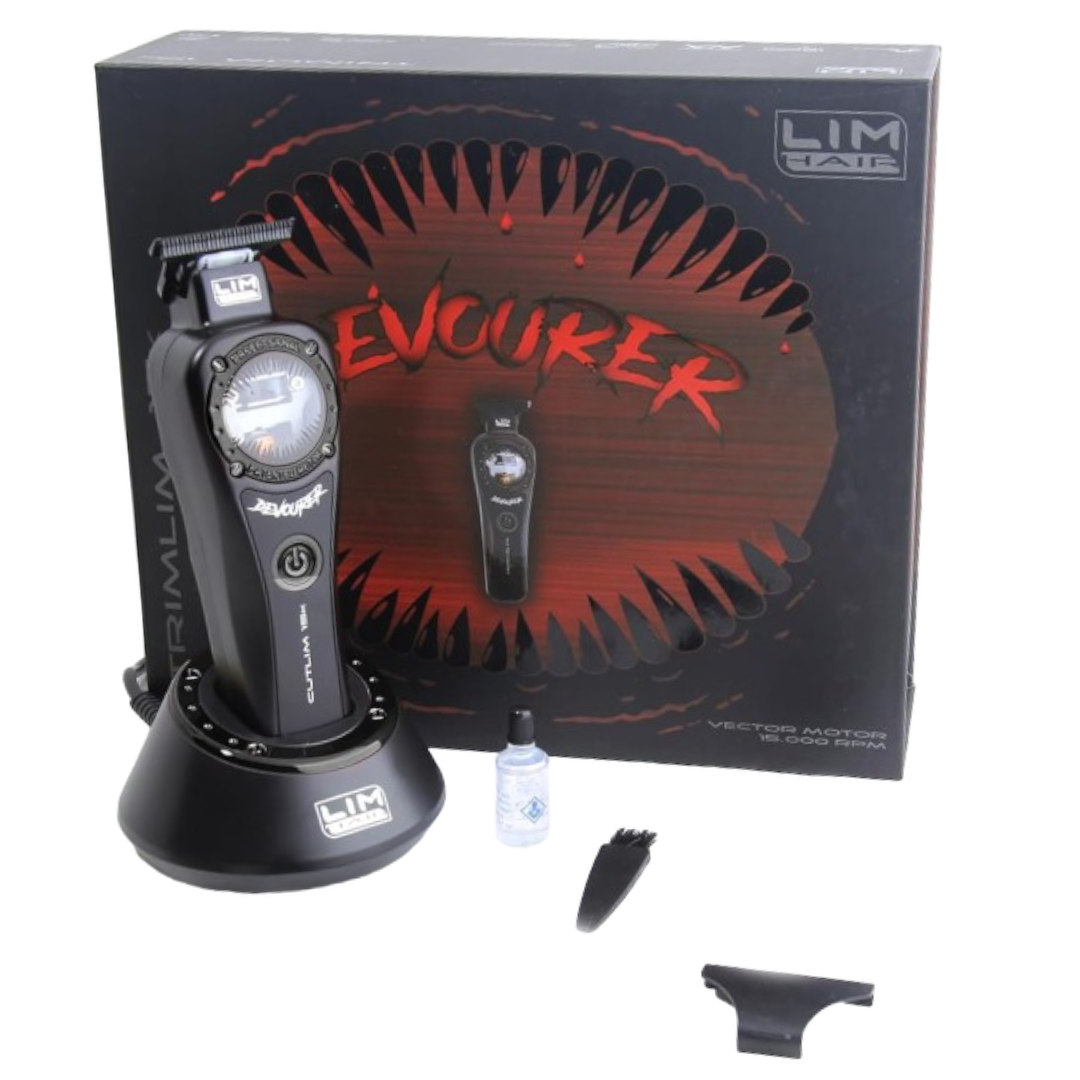 El recortador LIM Hair 15k DEVOURER es una de las Trimmer tecnológicamente más avanzados del mercado. El tipo de motor VECTOR representa una evolución del conocido motor magnético con el sistema de control electrónico ATA de TORQUE, de modo que cuando la carga de corte aumenta, se aumenta la potencia, cambiando la velocidad de corte de 11000 rpm a 15000 rpm.